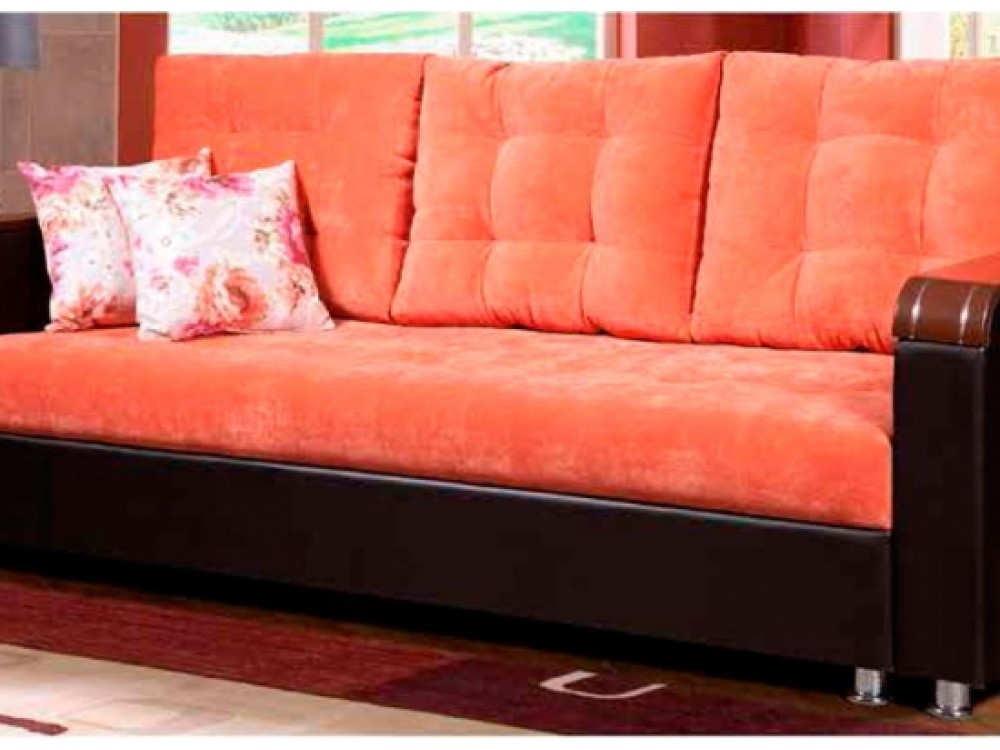 Тахта «Галина-2» удобная, простая модель. Механизм трансформации – «еврокнижка». В разложенном виде представляет удобную 2-х спальную кровать. Сидение и спинка на основе пружинного блока. Имеется емкость для постельных принадлежностей. Боковины съемные. В комплект входят 3 подушки спинки и 2 декоративные подушки. Может изготавливаться в разных цветовых решениях. Производитель фабрика Стиль