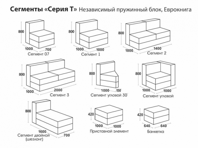 За счет модулей возможны любая комплектация и размер (шаг ‒ 5 см).