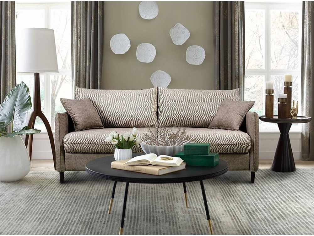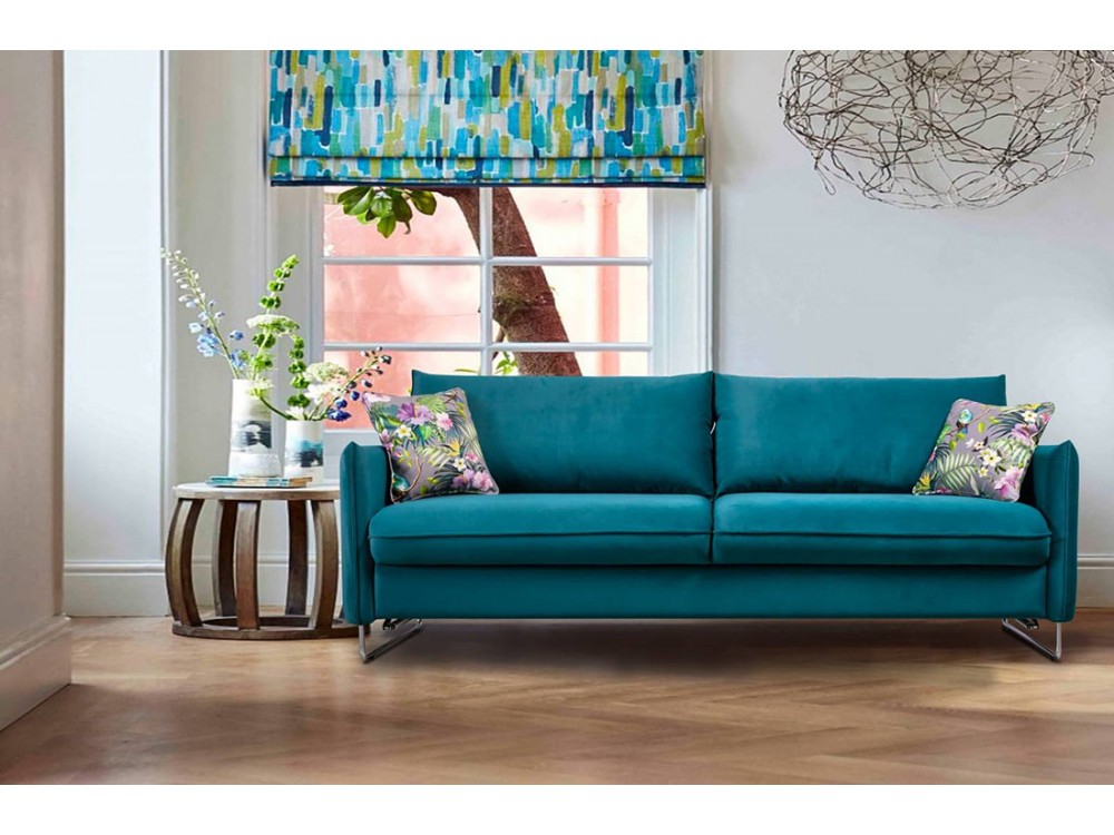 Многогранность дивана раскроется в игре обивочного материала: бархат и велюр придадут кокетства, лён и шерсть – подчеркнут лаконичность, кожа и замша – добавят лоска. Дизайн дополняется максимальным комфортом приспинных подушек и просторным спальным местом размером 200 х 140 см. Современный механизм трансформации спального места «пума» раскрывается над поверхностью пола, не оставляя следов на напольных покрытиях и коврах. На выбор предлагаются два вида опор высотой 12 см : из массива дуба и металлические.