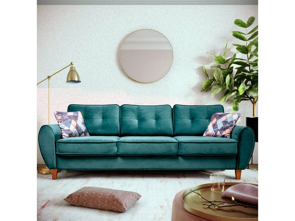 Оригинальные высокие опоры из массива дерева выглядят основательно и привлекают внимание, внося в обстановку частичку природы. За безупречный комфорт отвечают несъёмные подушки спинки и элегантные мягкие подлокотники. Украшают модель втяжки на подушках и ультрамодный кант.