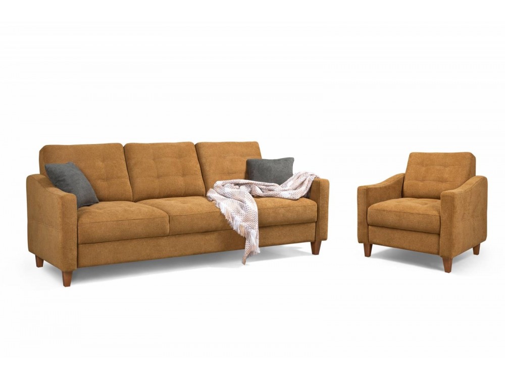 У модели масса достоинств: компактные габаритные размеры в сочетании с достаточно просторным спальным местом; несъёмные подушки спинки освободят от решения вопроса «Куда пристроить на ночь диванные подушки?»; современный надёжный механизм трансформации спального места «пума»; высокие опоры предлагаются в трёх вариантах цвета, они не только придают "изюминку" дивану, но ещё и играют функциональную роль - Вы можете с легкостью делать уборку под самим диваном; задняя стенка дивана зашита в основную ткань, что позволяет располагать диван не только вдоль стены.