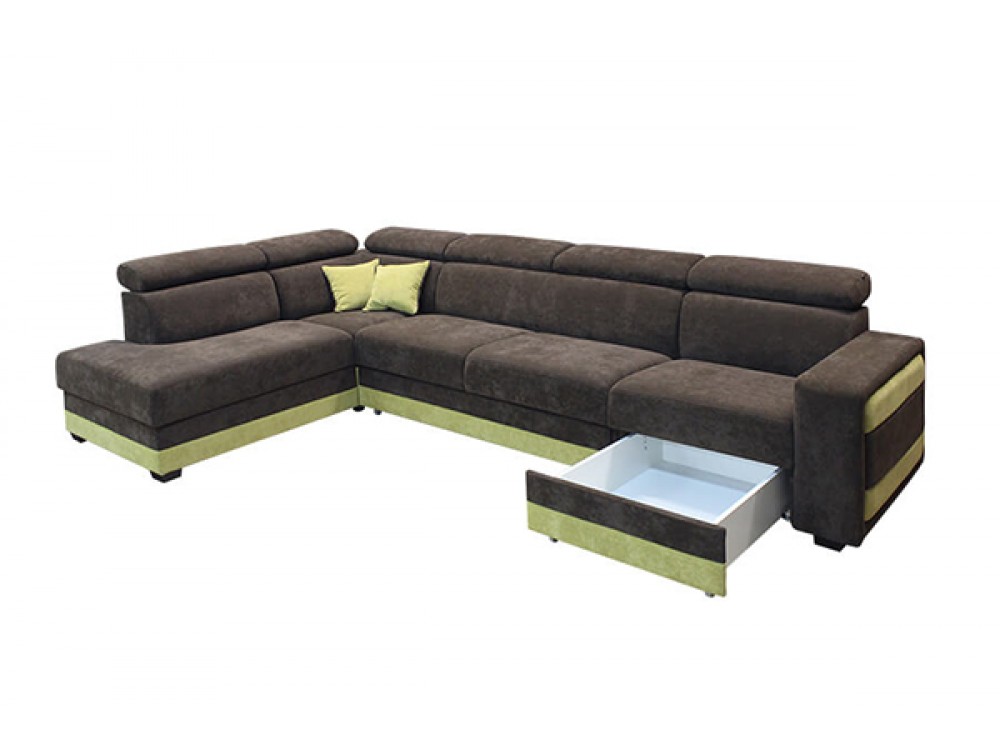 У «Евромодуля» подлокотники напоминают камушки-блинчики. А у «Евромодуля-Люкс» они квадратные, могут быть оформлены вставкой (мягкой или пикованной) либо иметь встроенную полку.