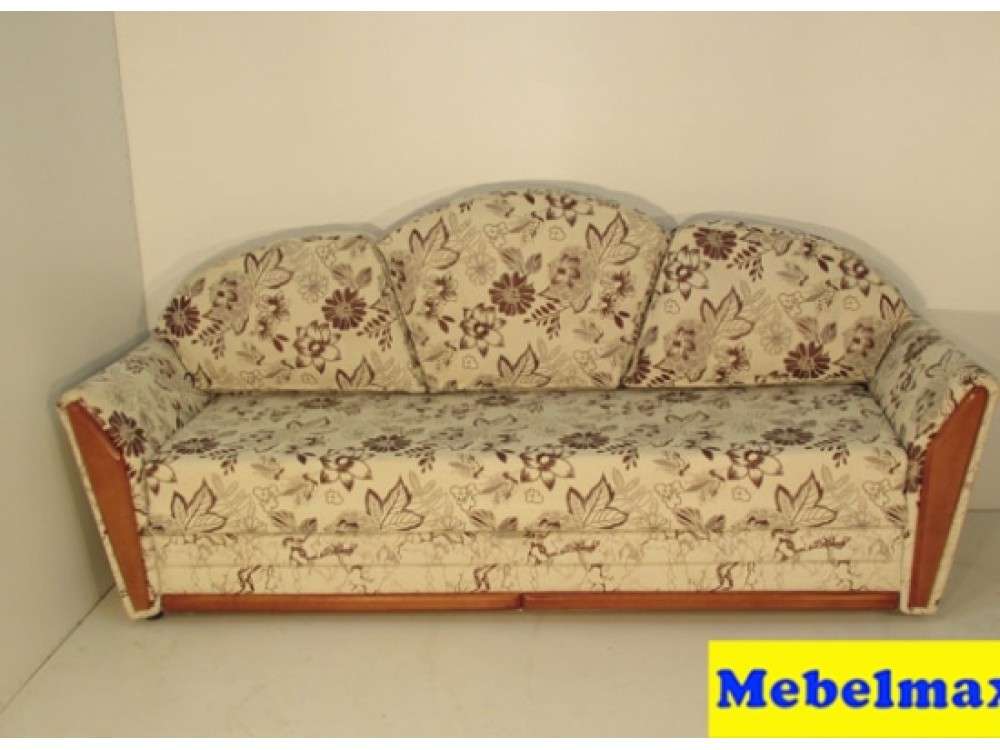 Размеры: 2300х900х870. Раскладной диван «Мила» с декоративными деревянными панелями на подлокотниках обладает высокой удобной спинкой и стильным дизайном, который позволит изделию выгодно смотреться в помещении с любым типом освещения. На обивочную ткань представленной на фото модели нанесен черный цветочный узор.