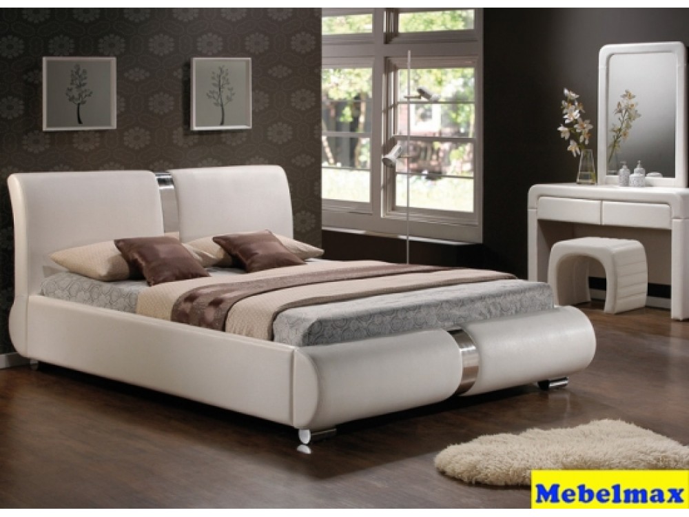 Кровать Материал: ПВХ кожа, цвет: Белый Полная рама с эластичными полосками , внедренных в гибкими ручками. Дополнительный Балка к центру кадра. Размер матраса: 160x200cm.