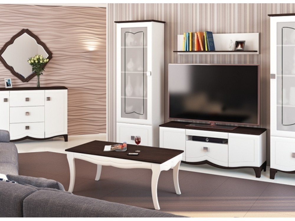 Сочетание цветов привлекает взгляд своим стильным дизайном и делает эту стенку изюминкой вашей гостиной.