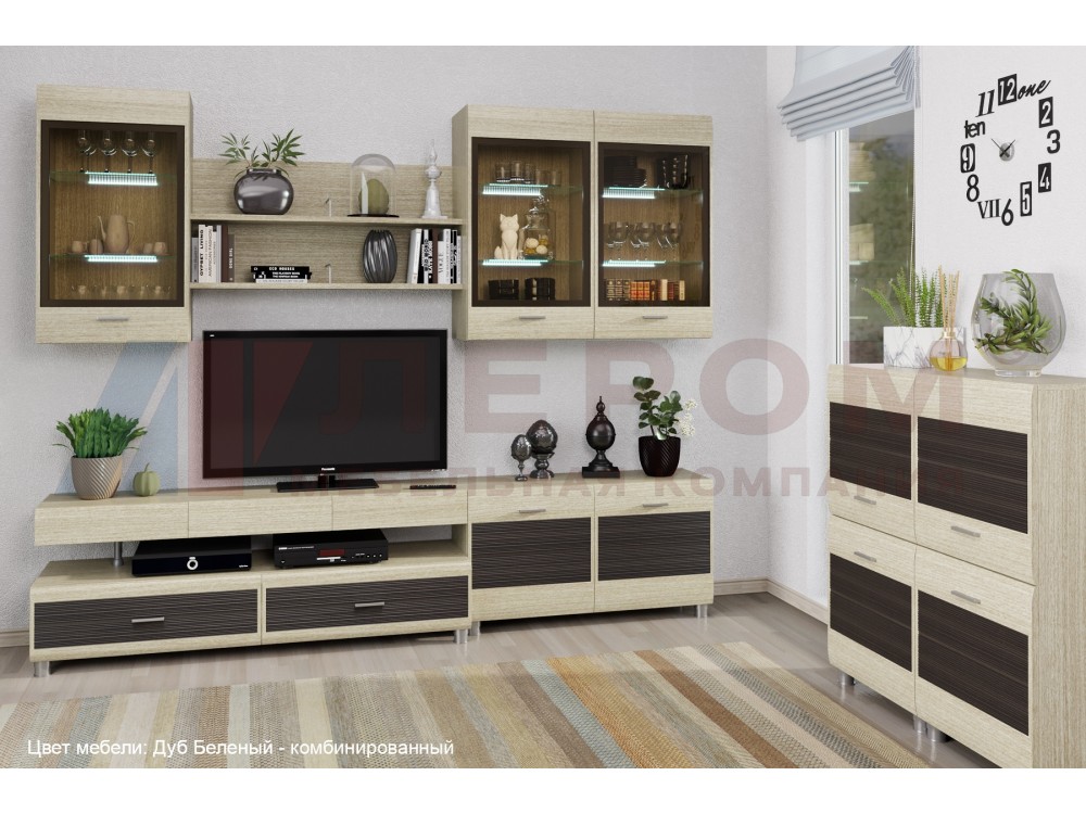 Применяемые материалы: корпус ЛДСП, фасад МДФ.Габаритные размеры: ВхШхГ - 2172х2700х452мм.Размер ниши под телевизор: ВхШ - 1000х1080 мм.Состав композиции по модулям: АН-1634, АН-1661, ТБ-1672, ПЛ-302, ПЛ-302, АН-1631, ТБ-1627, ТБ-1605, комплект подсветки (опция).Композиция изготавливается в следующих цветовых вариантах:- Дуб Беленый (БД)- Дуб Беленый - комбинированный (БД-К)- Дуб Венге (ВЕ)- Слива Валлис - комбинированный (СЛ-К)