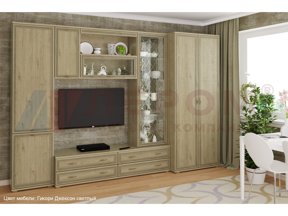 Применяемые материалы: корпус ЛДСП, фасад МДФ.Габаритные размеры: ВхШхГ - 2224х3240х448 мм. Размер ниши под телевизор: ВхШ - 1058x1260 мм.Состав композиции по модулям: ШК-1041, АН-1026, ТБ-1032, ШК-1062, ШК-1002, ЗР-1011.Композиция изготавливается в следующих цветовых вариантах:- Снежный ясень (СЯ)- Ясень Асахи (АС)- Гикори Джексон светлый (ГС)- Акация Молдау (АТ)Внимание! Цвета, представленные на дисплее, воспроизведены электронным способом. Они не заменяют оригинальные цвета, так как на восприятие цвета влияют, среди прочих, такие факторы, как структура поверхности, освещение и цвета отделки интерьера. Перед выбором окончательного цвета рекомендуем ознакомиться с мебелью в салонах наших представителей.