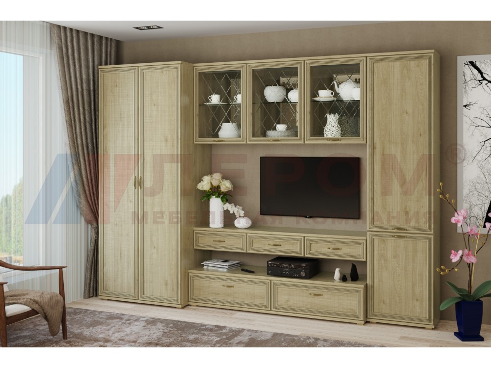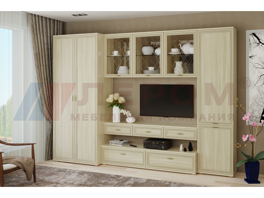 Применяемые материалы: корпус ЛДСП, фасад МДФ.Габаритные размеры: ВхШхГ - 2224х3060х448 мм. Размер ниши под телевизор: ВхШ - 766x1620 мм.Состав композиции по модулям: ШК-1002, АН-1011, АН-1051, ТБ-1072, ШК-1041, ЗР-1019.Композиция изготавливается в следующих цветовых вариантах:- Снежный ясень (СЯ)- Ясень Асахи (АС)- Гикори Джексон светлый (ГС)- Акация Молдау (АТ)Внимание! Цвета, представленные на дисплее, воспроизведены электронным способом. Они не заменяют оригинальные цвета, так как на восприятие цвета влияют, среди прочих, такие факторы, как структура поверхности, освещение и цвета отделки интерьера. Перед выбором окончательного цвета рекомендуем ознакомиться с мебелью в салонах наших представителей.