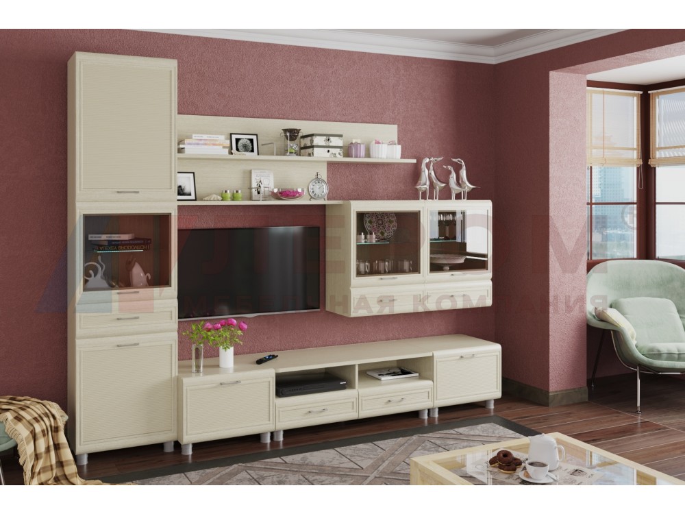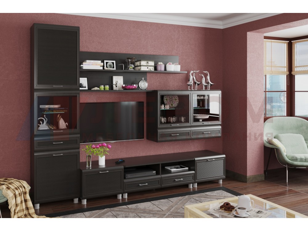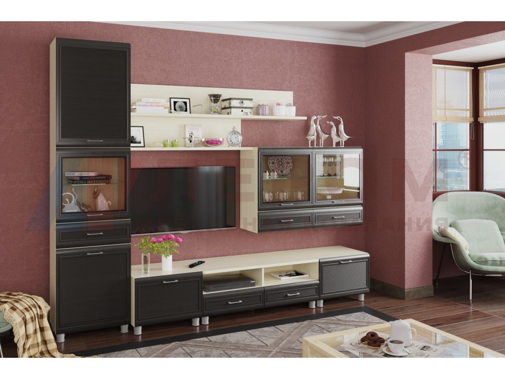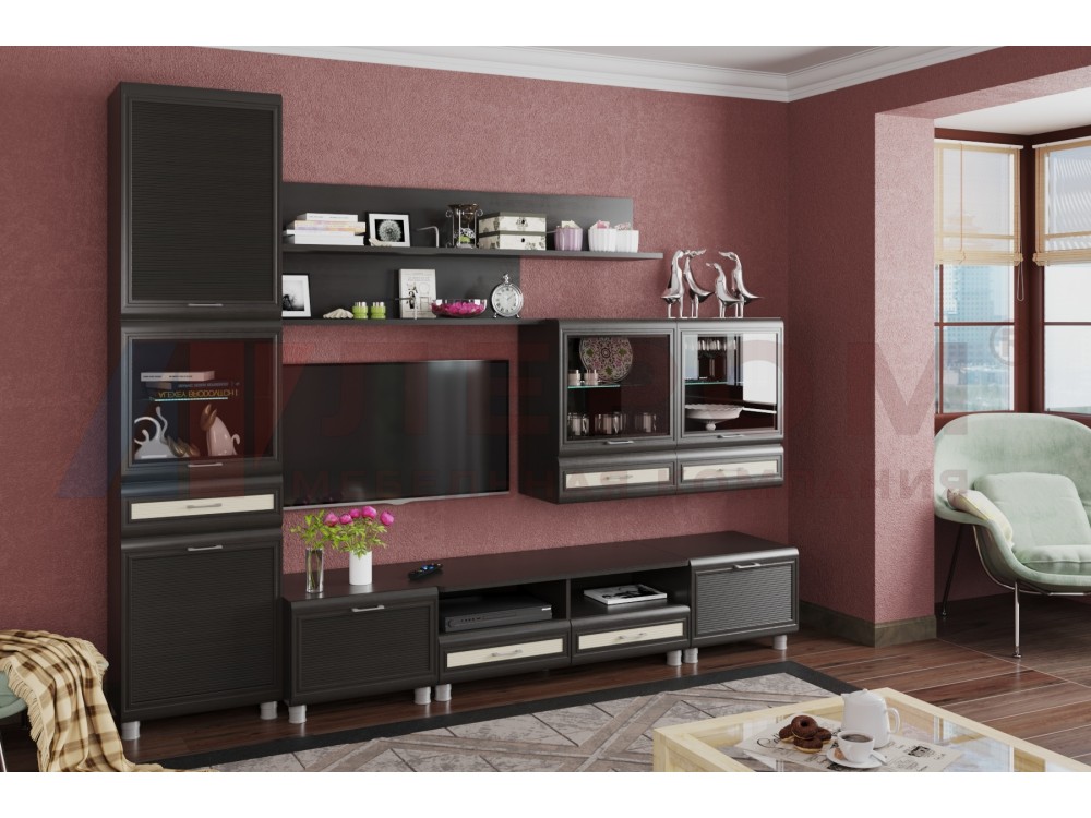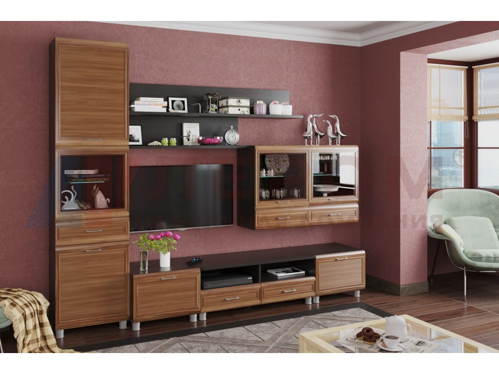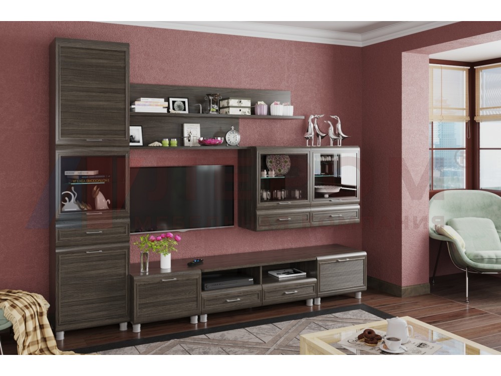 Применяемые материалы: корпус ЛДСП, фасад МДФ.Габаритные размеры: ВхШхГ - 2172х2700х452 мм. Размер ниши под телевизор: ВхШ - 1080х900 мм.Состав композиции по модулям: ШК-1850, ПЛ-307, ПЛ-302, ТБ-1838, АН-1810, ТБ-1836, АН-1810, ТБ-1838.Композиция изготавливается в следующих цветовых вариантах:- Дуб Беленый (БД)- Дуб Беленый, вставка ящика Дуб Венге (БД-Я-ВЕ)- корпус Дуб Венге, фасад Дуб Беленый (ВЕ-БД)- Дуб Венге (ВЕ)- Дуб Венге, вставка ящика Дуб Беленый (ВЕ-Я-БД)- корпус Дуб Беленый, фасад Дуб Венге (БД-ВЕ)- Дуб Сонома (СН)- Дуб Пасадена (ПС)- Слива Валлис (СЛ)- Слива Валлис, вставка ящика Дуб Венге (СЛ-Я-ВЕ)- корпус Дуб Венге, фасад Слива Валлис (ВЕ-СЛ)Внимание! Цвета, представленные на дисплее, воспроизведены электронным способом. Они не заменяют оригинальные цвета, так как на восприятие цвета влияют, среди прочих, такие факторы, как структура поверхности, блеск и освещение. Перед выбором окончательного цвета рекомендуем ознакомиться с мебелью в салонах наших представителей.