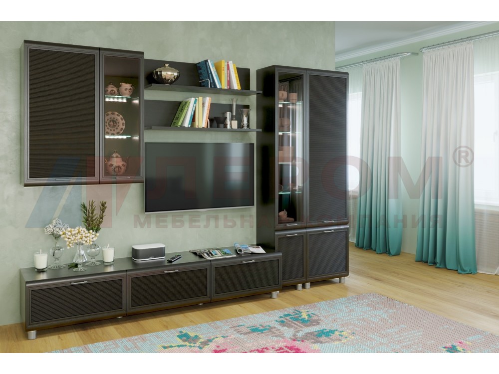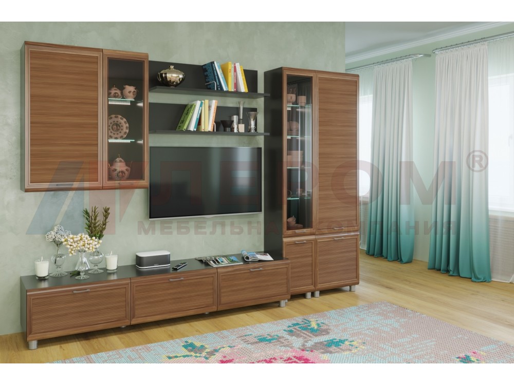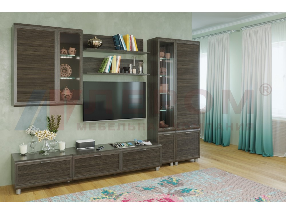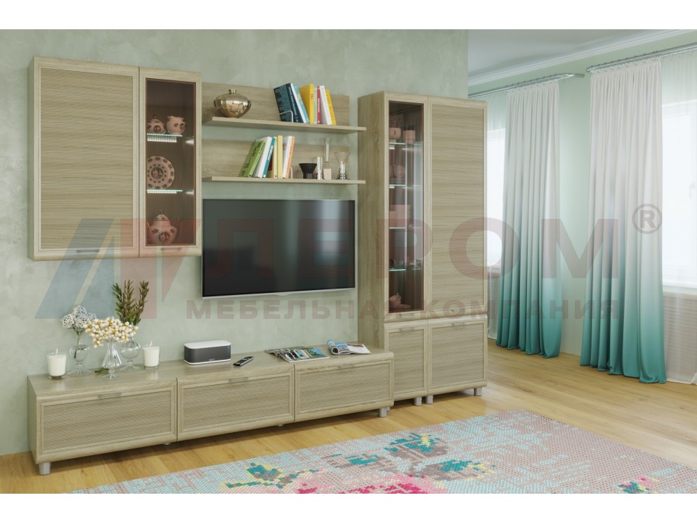 Применяемые материалы: корпус ЛДСП, фасад МДФ.Габаритные размеры: ВхШхГ - 2172х3056х452 мм. Размер ниши под телевизор: ВхШ - 762х1080 мм.Состав композиции по модулям: АН-1822, ПЛ-302, ПЛ-302, ТБ-1831, ШК-1854, ШК-1841.Композиция изготавливается в следующих цветовых вариантах:- Дуб Беленый (БД)- корпус Дуб Венге, фасад Дуб Беленый (ВЕ-БД)- Дуб Венге (ВЕ)- корпус Дуб Беленый, фасад Дуб Венге (БД-ВЕ)- Дуб Сонома (СН)- Дуб Пасадена (ПС)- Слива Валлис (СЛ)- корпус Дуб Венге, фасад Слива Валлис (ВЕ-СЛ)
