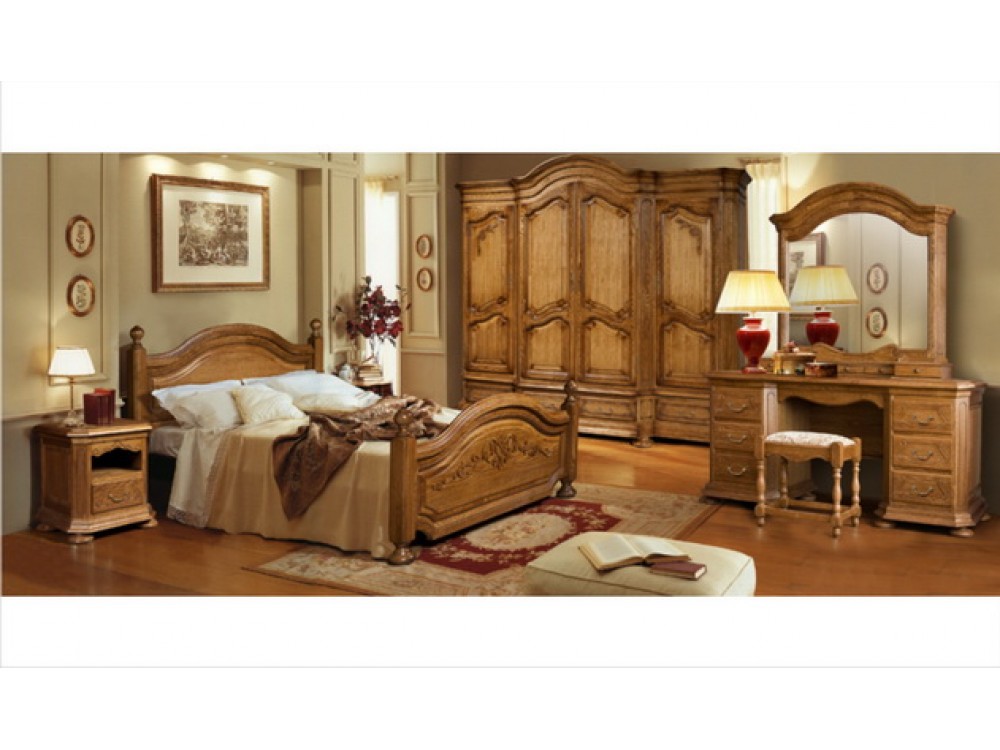Набор мебели состоит из:1. Стол туалетный ГМ 6244, 763(1919)*1740*585 мм2. Банкетка ГМ 6243, 473*476*316 мм3. Кровать ГМ 6233Р, 975*1758(1600)*2175 мм4. Тумба прикроватная ГМ 6234Р, 595*610*465 мм5. Шкаф для платья и белья ГМ 6219Р, 2295*2660*686 мм