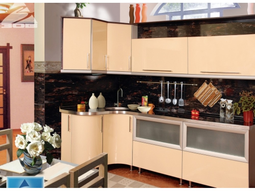 Это необычное сочетание гнутых и скошеных фасадов фабрики ЗОВ прекрасно сочетаются.Хороший и стильный дизайн будет радовать хозяйку каждый день.Эти цвета очень гармонируют друг с другом.А главное-это цена и качество.Данную кухню вы можете преобрести в нашем магазине МЕБЕЛЬМАКС